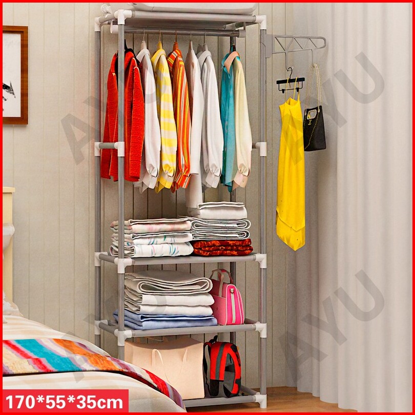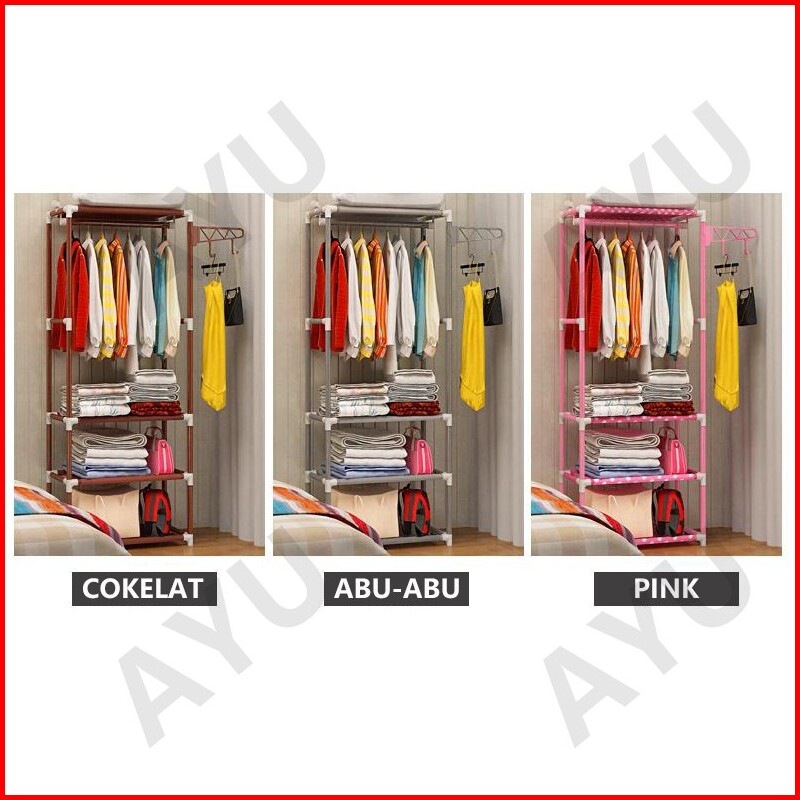 Square Stand Hanger Rak Baju Portable Lemari Pakaian Tanpa Cover