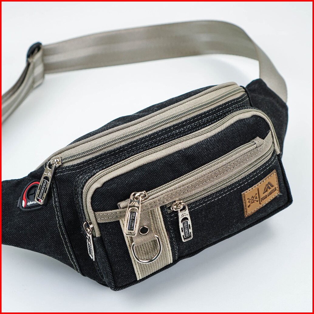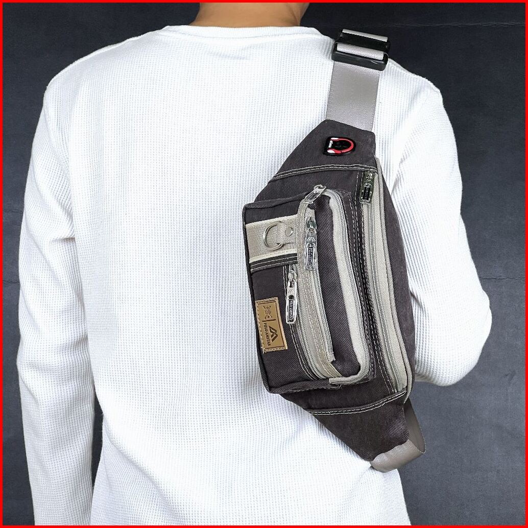 Polo Amstar Canvas Waistbag Tas Selempang Pria Casual Multifungsi Slingbag Kanvas Tas Pinggang Cowok