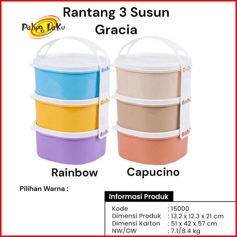 Rantang 3 Susun Gracia 1 Pcs - Rantang Capucino Rantang Rainbow Food Grade