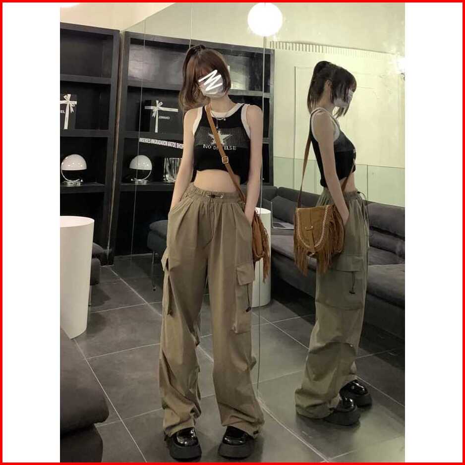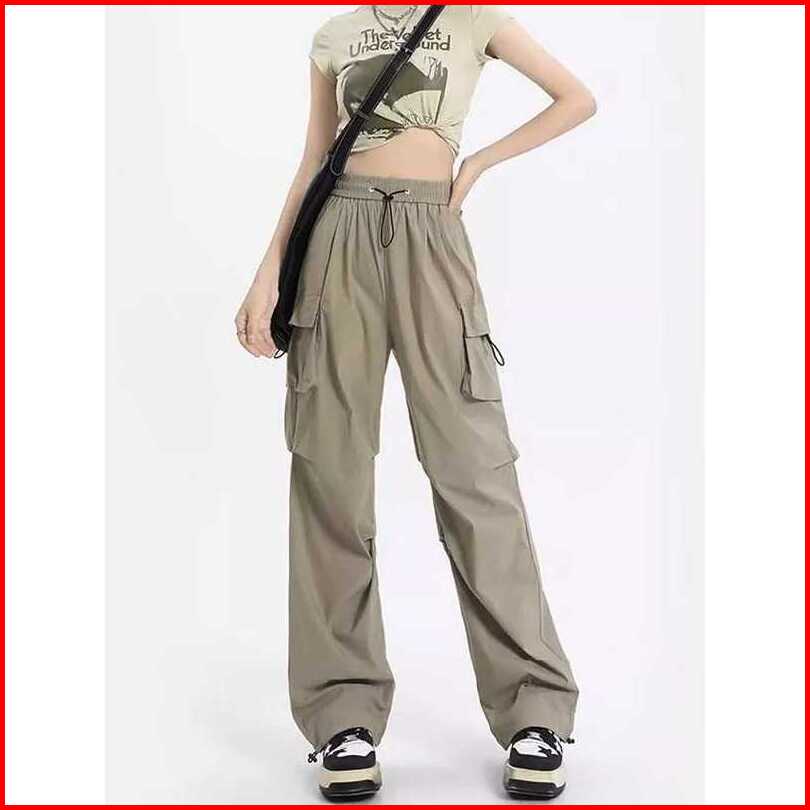 Kiya Cargo Pants Wanita Highwaist Loose Korean Style Jumbo - Celana Kargo Wanita Terbaru - Celana Cargo Serut Wanita