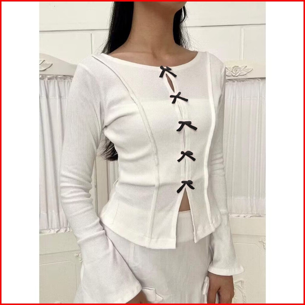 Femes Leora Blouse Atasan Bow Top Korean Style Wanita Remaja Ootd Casual Daily Premium