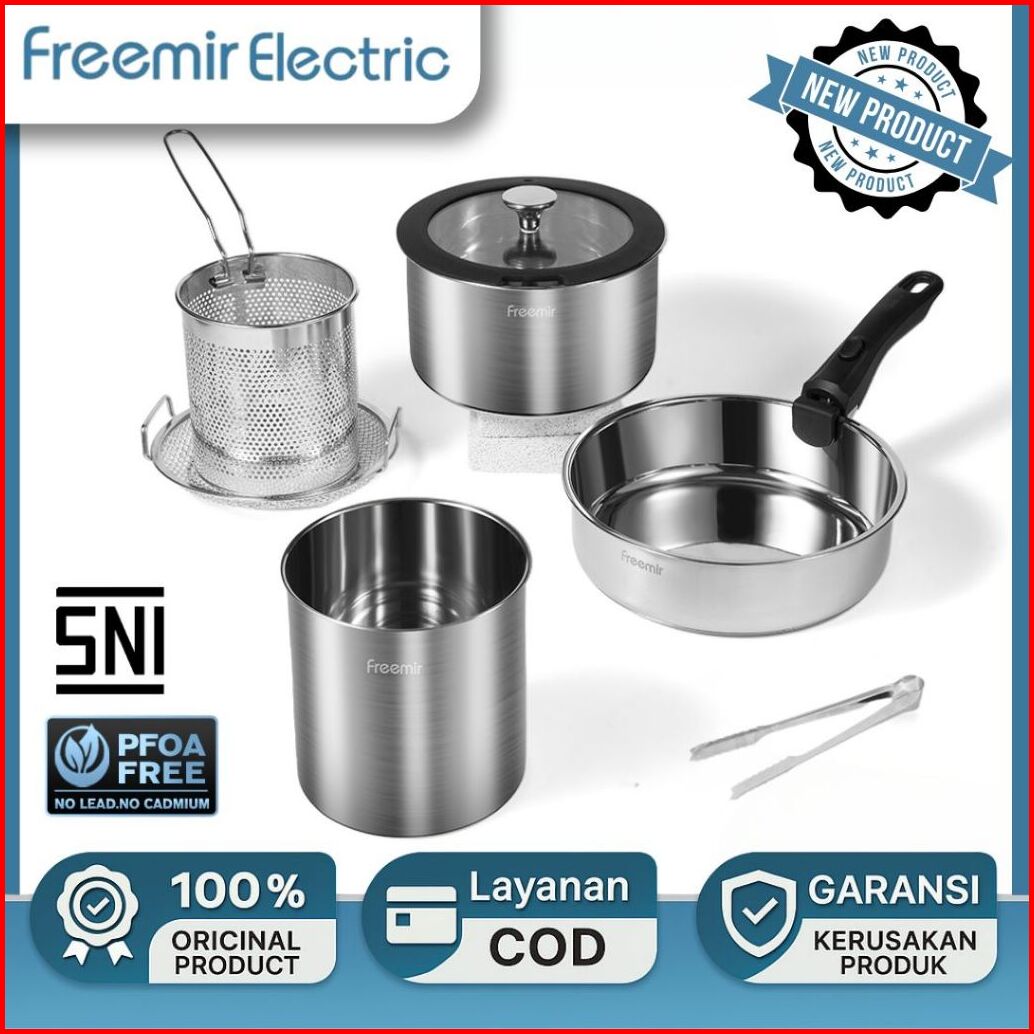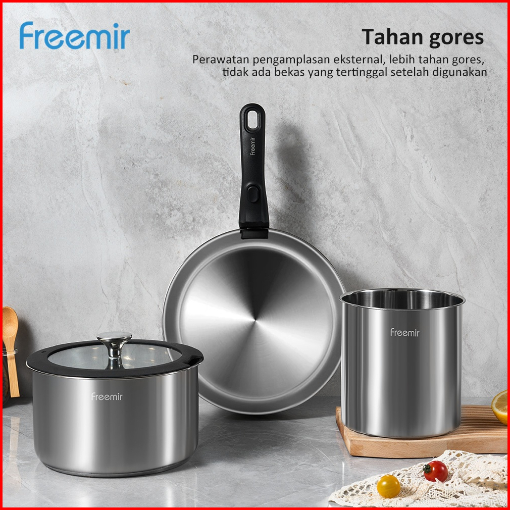 New 2025 Freemir Set 7 Pcs Panci Penggorengan Set Masak Stainless Steel Gagang Lepas Pasang