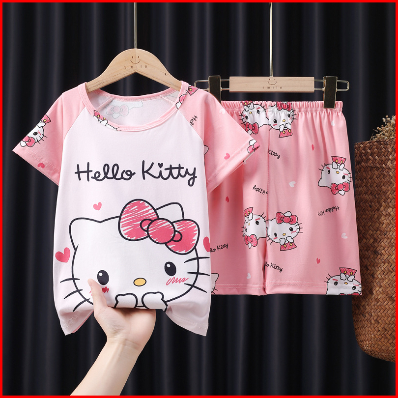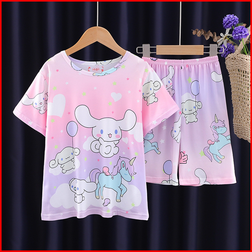 Chava Bt1356 Setelan Baju Tidur Anak Cowok Perempuan Lengan Pendek Motif Kartun Lucu Import