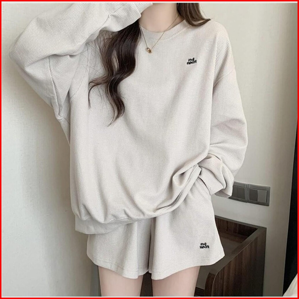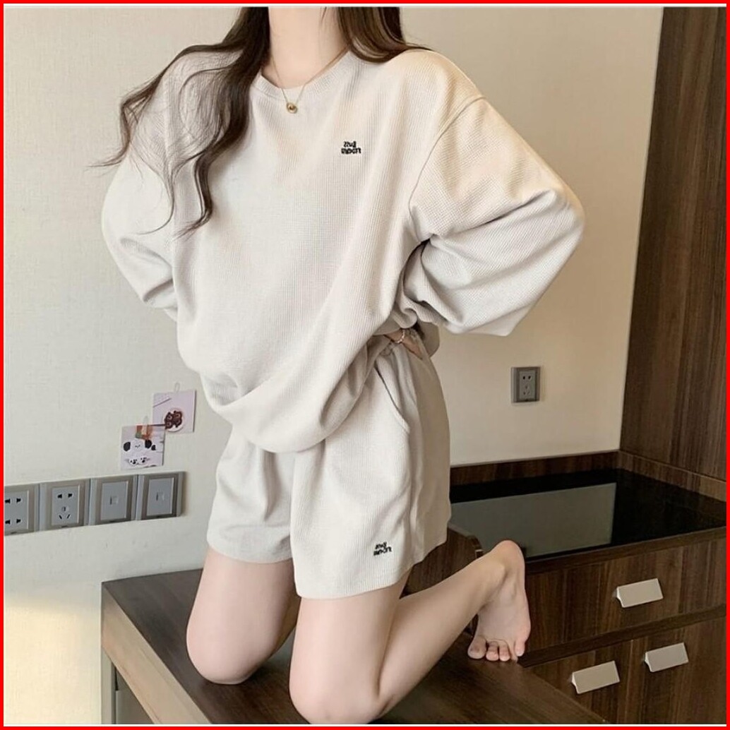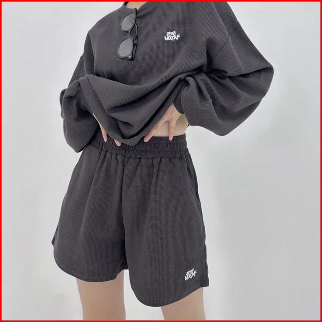 One Set Mozza Waffle Sweater Celana Pendek - Set Setelan Wanita