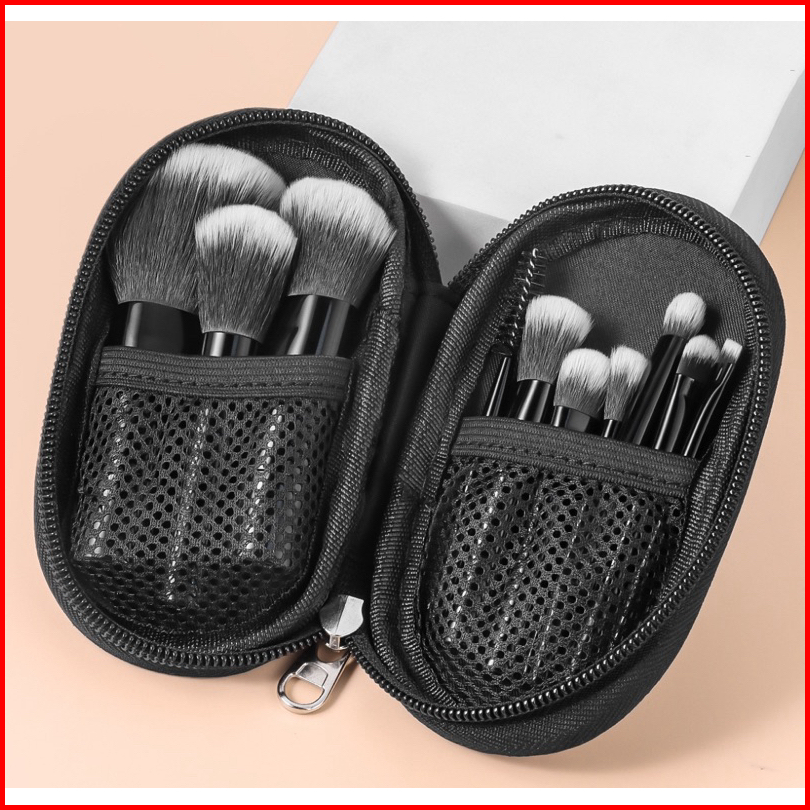 Brush Makeup Travel Set 10pcs Dengan Pouch Cantik Kuas Alat Make Up Kosmetik Portable - Mua1
