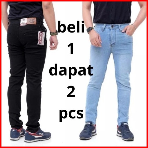 Celana Jeans Pria Slim Fit Terbaru Celana Denim Cowok Kekinian Paket Hemat Beli 1 Dapat 2 Pcs