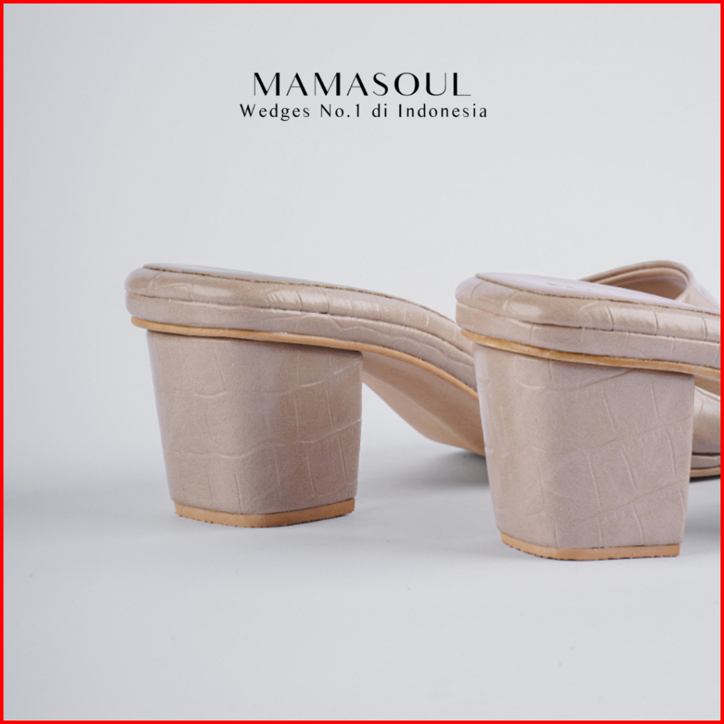 Mamasoul - Emma Sandal Wanita Croco Block Heels Tinggi 5cm