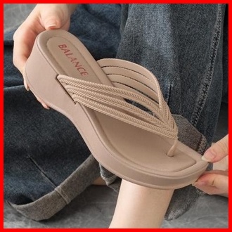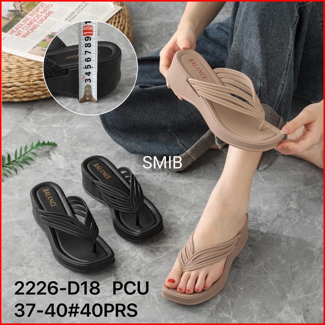 Sandal Jepit Wanita Karet Import Balance Motif Polos Ringan Empuk Sol Tebal 5 Cm 2226-d18