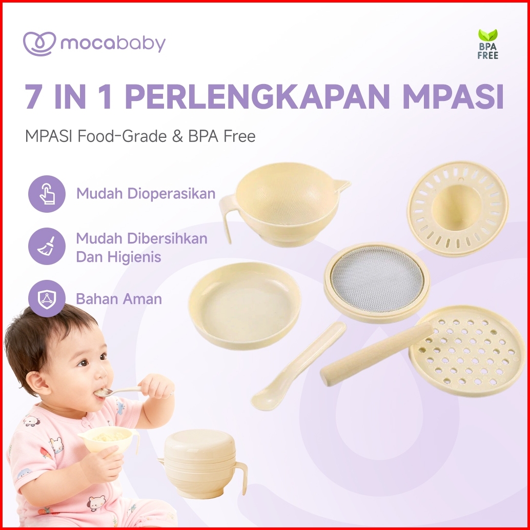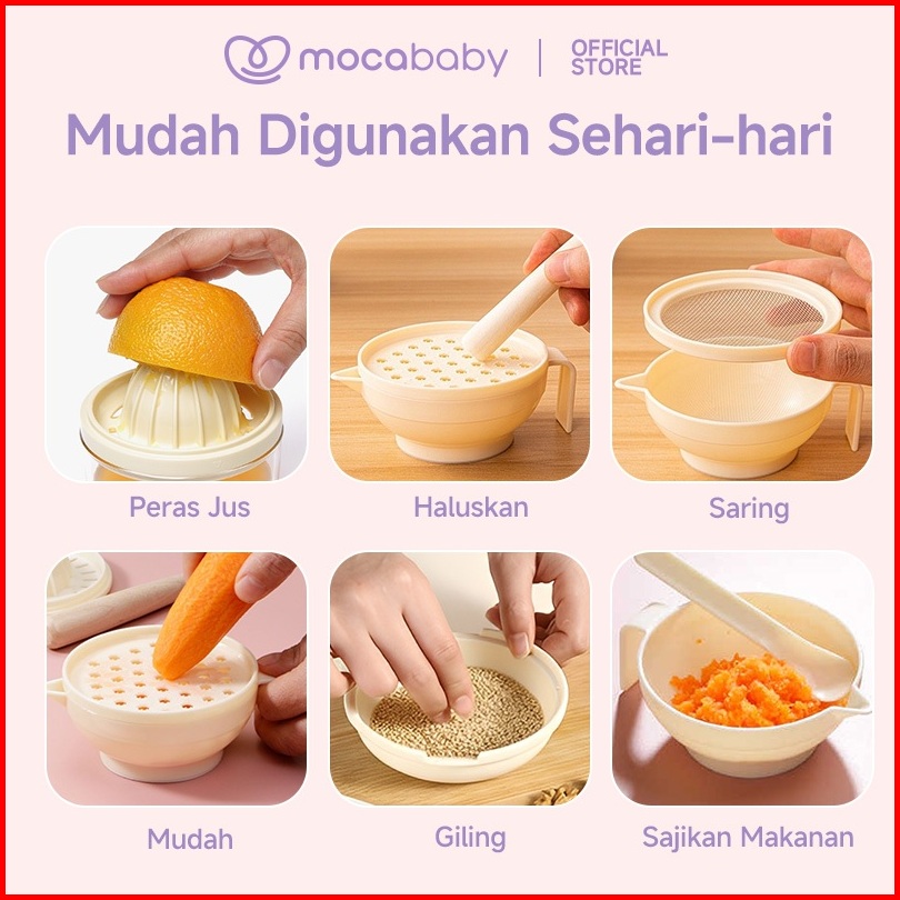 Mocababy Baby Food Maker Grinding Bowl Alat Pembuat Makanan Bayi Mpasi Anak Set Isi 7pcs Mangkok Tempat