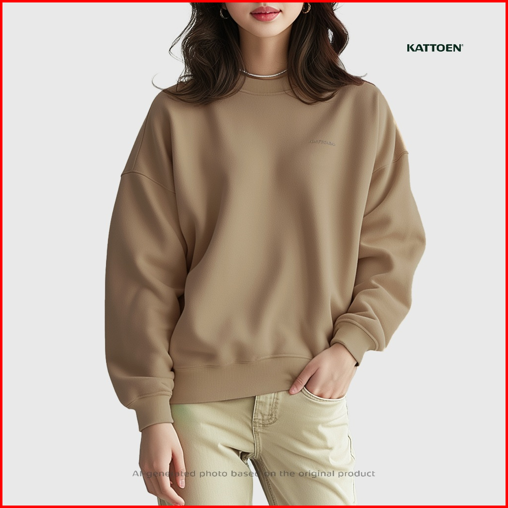 Kattoen Crewneck Sweater Oversize - Tan Cream 300 Gsm