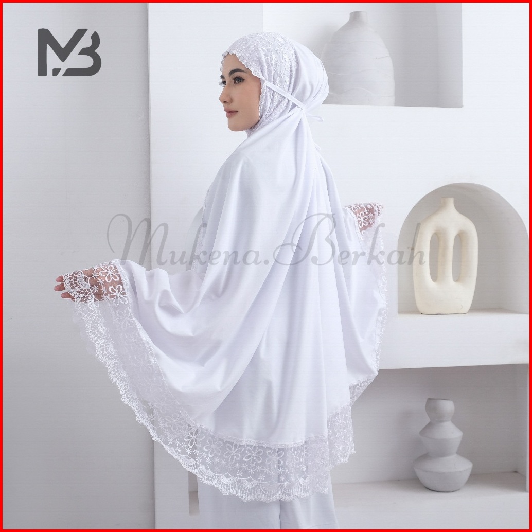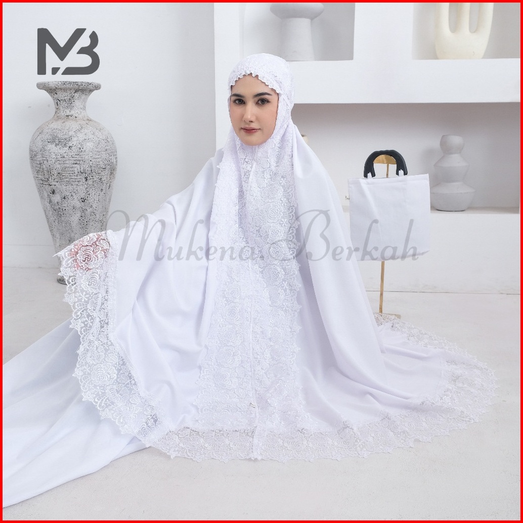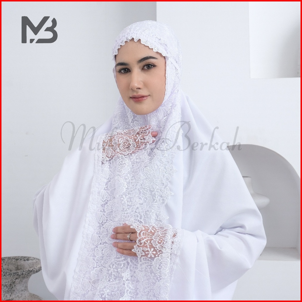 Mukena Dewasa Katun Putih Full Princes Renda Tille Putih Mewah