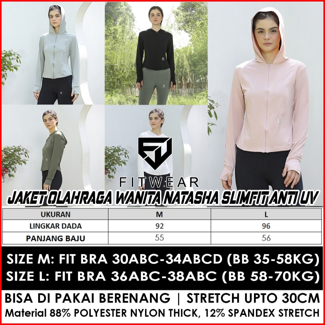 Fitwear - Jaket Olahraga Wanita Dryfit Natasha Slimfit Anti Uv - M - L