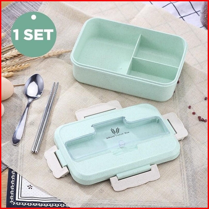 Lunch Box 2in1 3in1 Lunch Box Set Kotak Bekal Makan Botol Minum Lunch Bag Jerami Gandum Paket Kotak Makan 1000ml Free Se