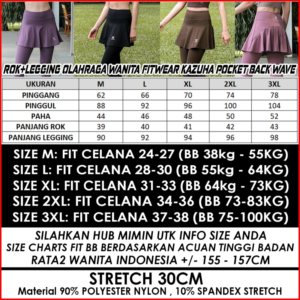 Fitwear Rok Legging Olahraga Padel Dryfit Wanita Kazuha Pocket - M - 3xl