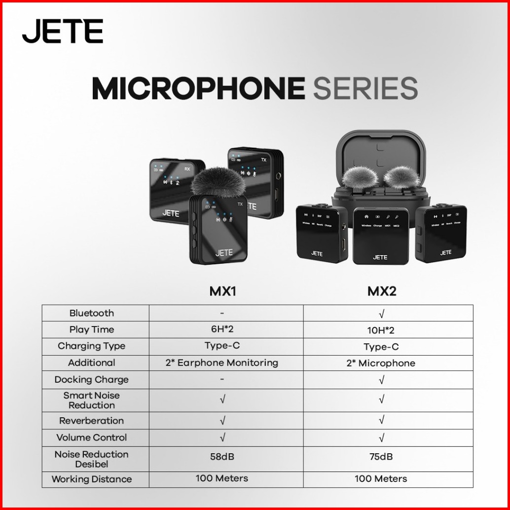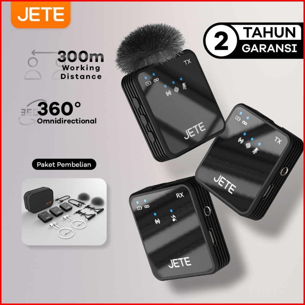 Jete Microphone Wireless Mx1 Lavalier Mic Clip On Dual Mikrofon Plug Play Vlog Streaming