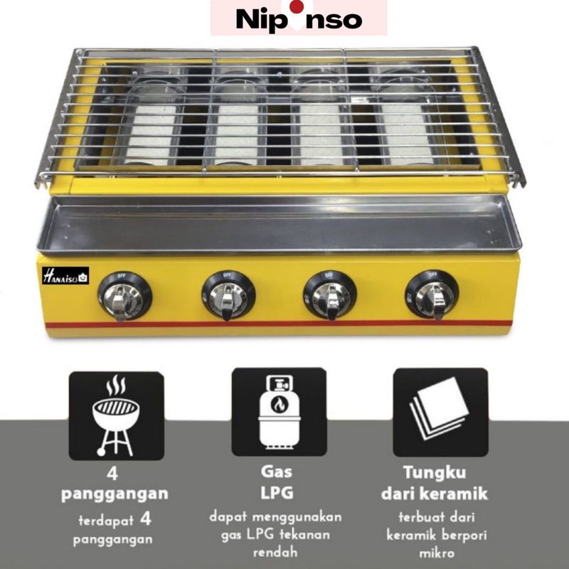 Medan Promo Pemanggang Panggangan Gas Roaster 4 3 2 Tungku Sosis Sate Ayam Ikan Jagung Bakar Bakaran Griller Kompor Panggang Bakar 4 Burner BBQ GEA Getra