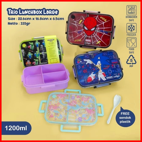 Lunchbox New Trio Lunchbox Large Sekat 3 Free Spoon Bpa Free 11119
