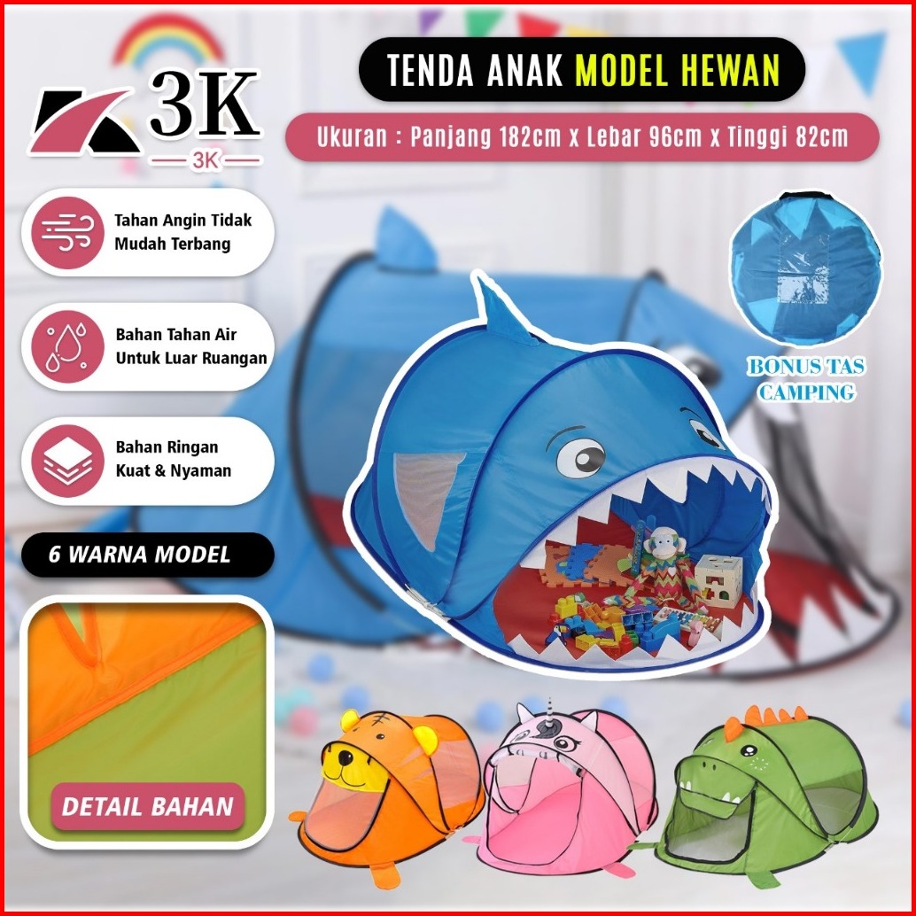 3k Surabaya Tenda Anak Karakter Animal Hewan Camping Otomatis Lipat Premium