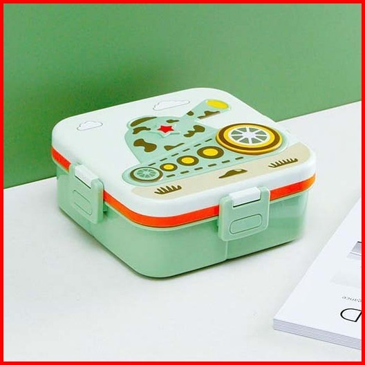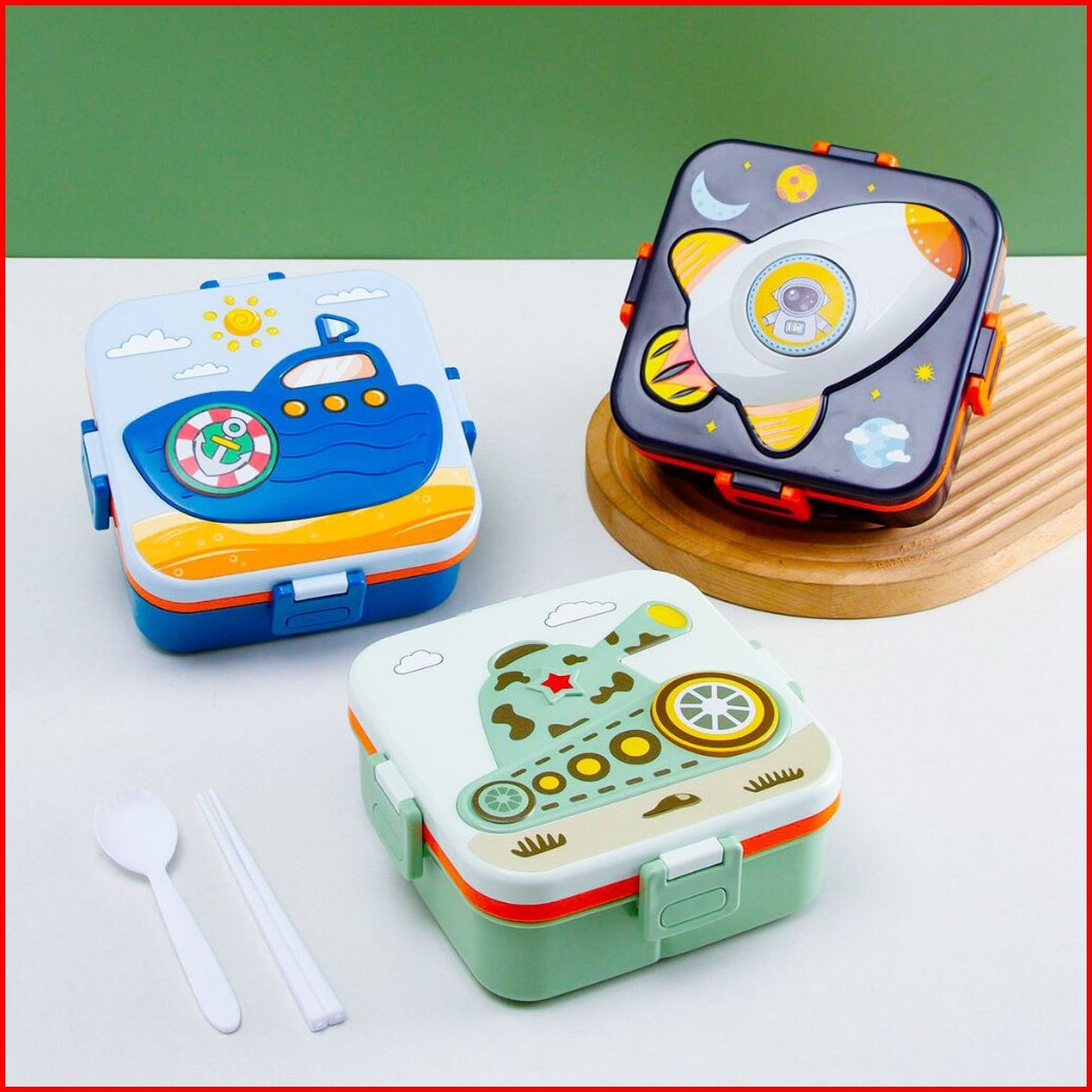 Kotak Makan Anak 3 Sekat Lunch Box Set Sendok Garpu Kotak Bekal 2 Layer Motif Transportasi 2655