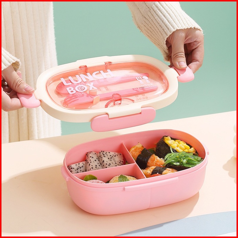 Kotak Makan 850ml 3 Sekat Lunch Box Anti Tumpah Bpa Free Model 392-393