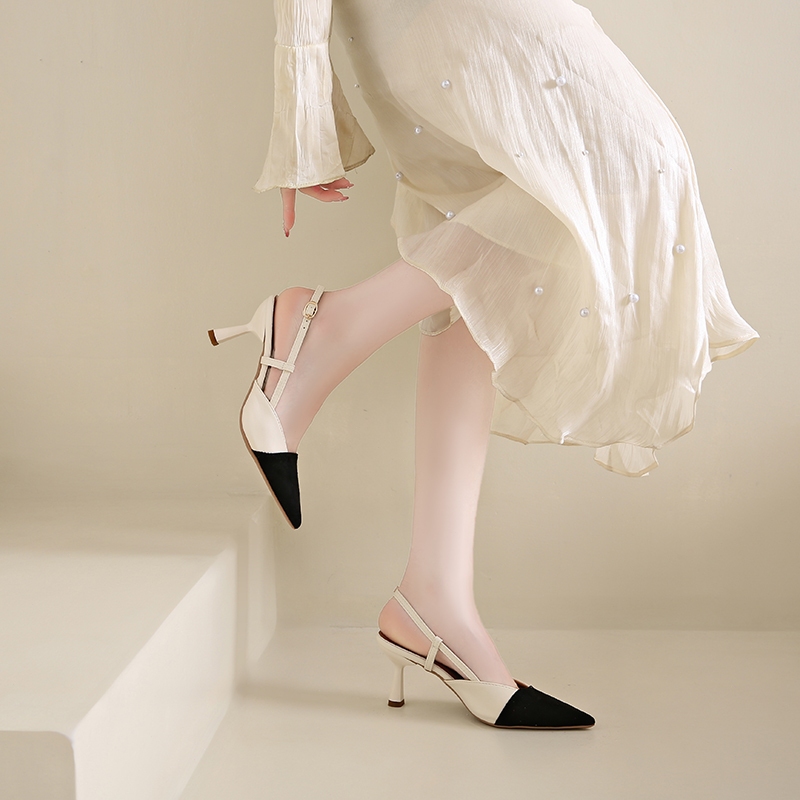 Venalisa Sandal runcing hak kulit wanita elegan 8cm Stiletto Warna senada Retro Kerja kantor heels