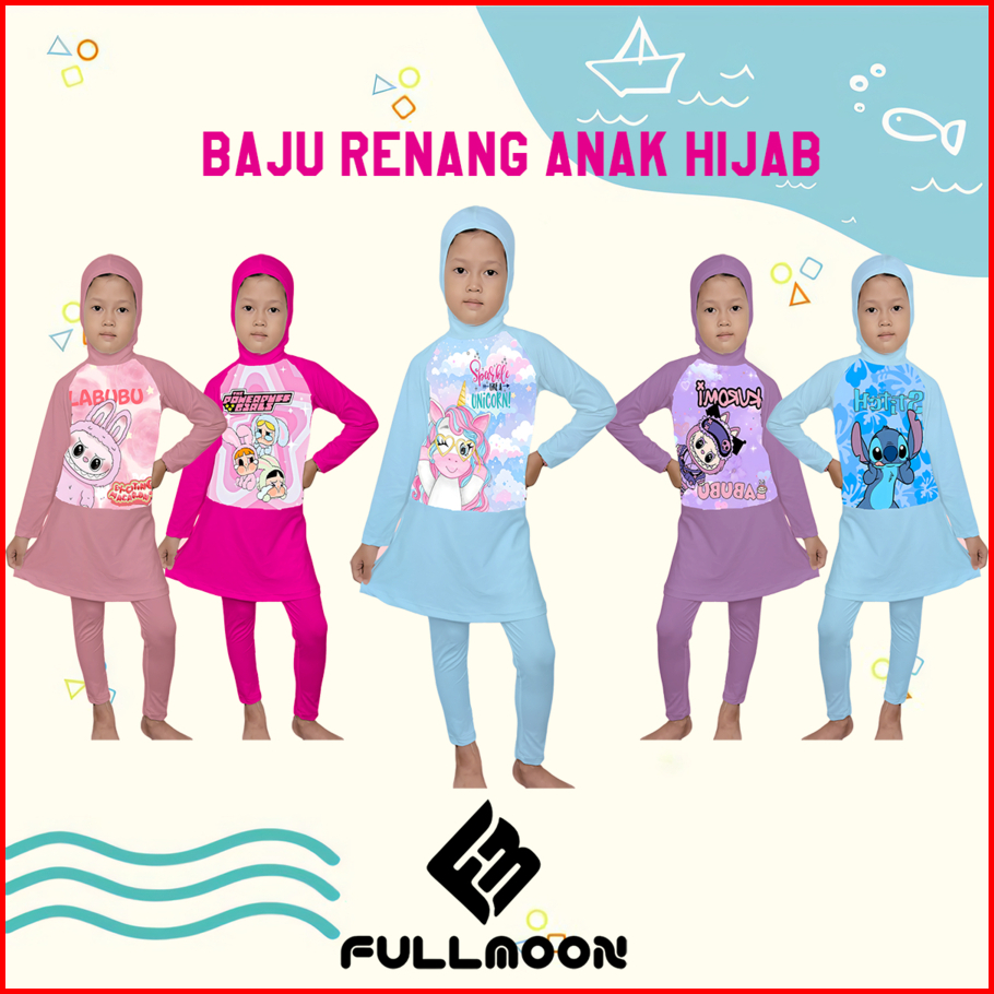 Fullmoon Kids Baju Renang Hijab Muslim Anak Motif Lucu Karakter