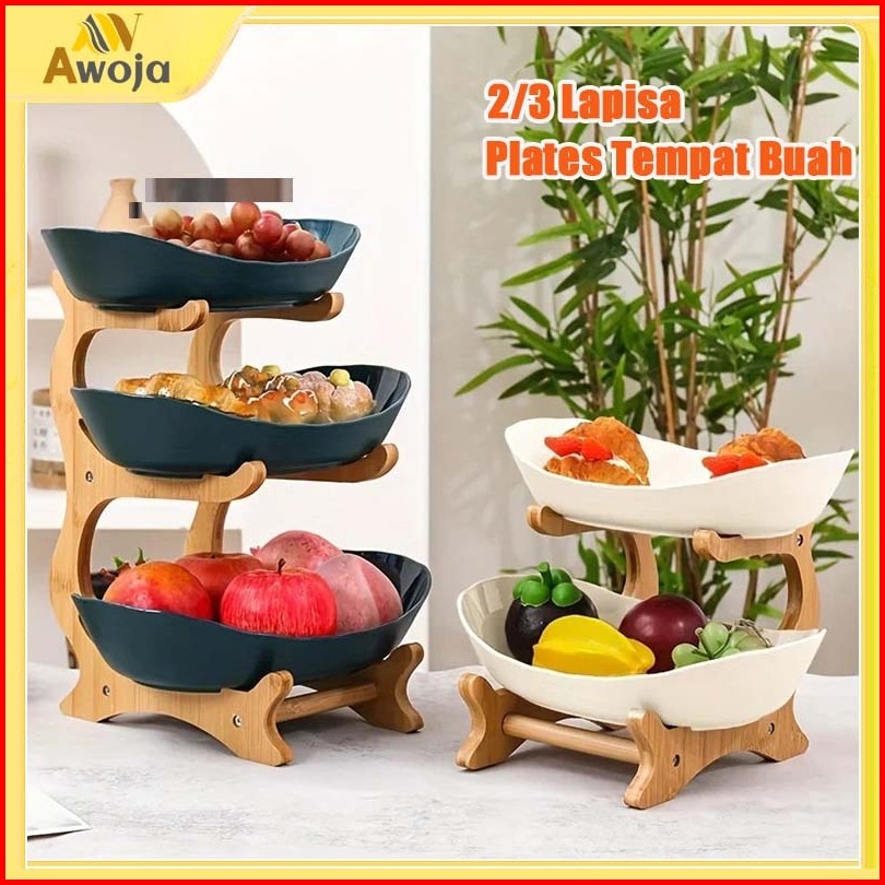 Buah Estetik Piring Nordic Tempat 3 Lapisan Nampan Buah Wadah Mewah Yang Dapat Dua Lapisan Pelengkap Makanan Kerajinan R