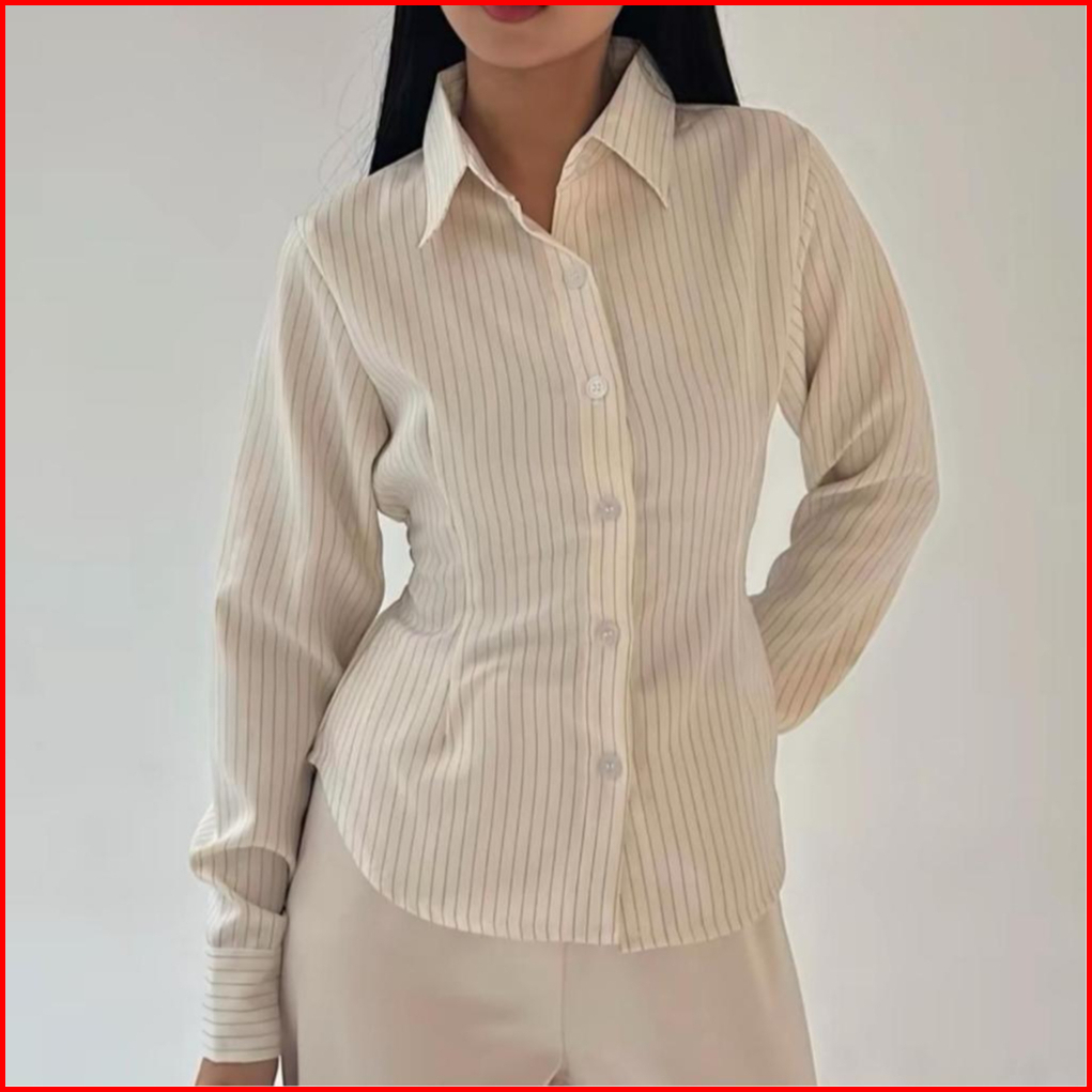 Ebise - Kemeja Luna Stripe Fit Body - Kemeja Wanita Fitted Body Premium Kerja Kantor Kuliah Wispie