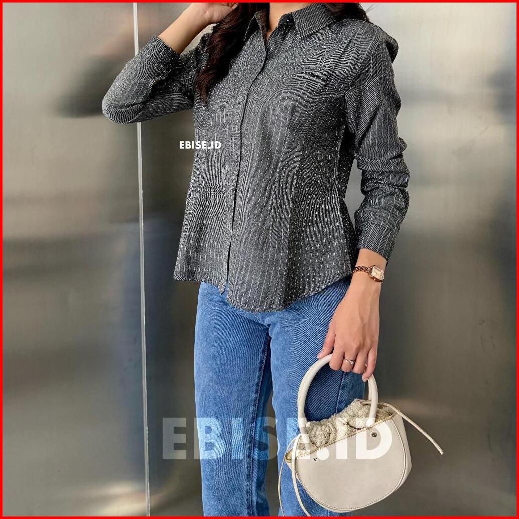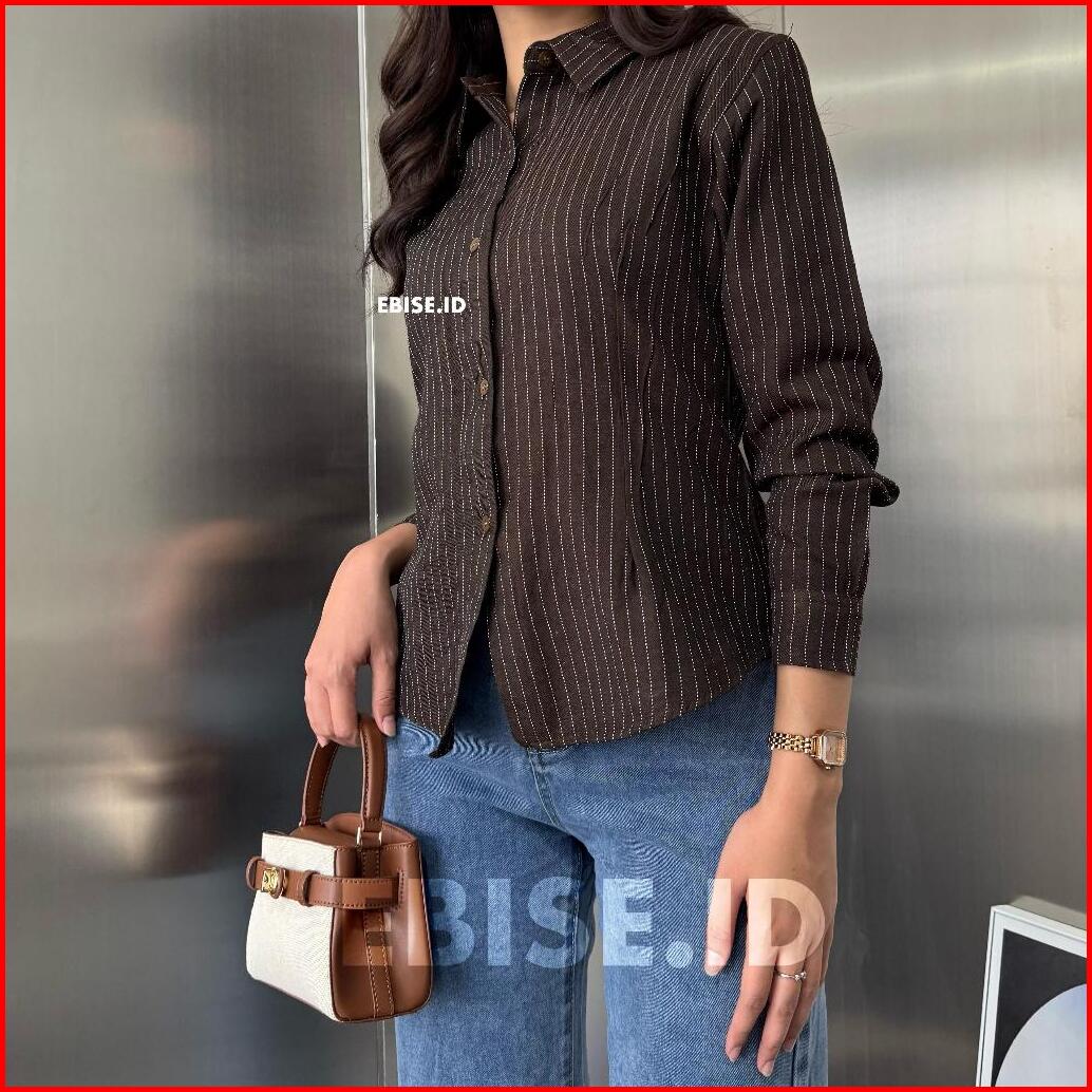 Kemeja Luna Stripe Fitted - Elton Stripe Fit Body - Kemeja Wanita Kerja Kantor Formal Garis Garis