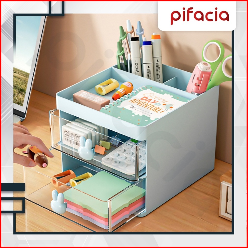 Pifacia Laci Organizer Kosmetik Karakter Kelinci 2 Susun Tempat Penyimpanan Alat Tulis Makeup Minimalis