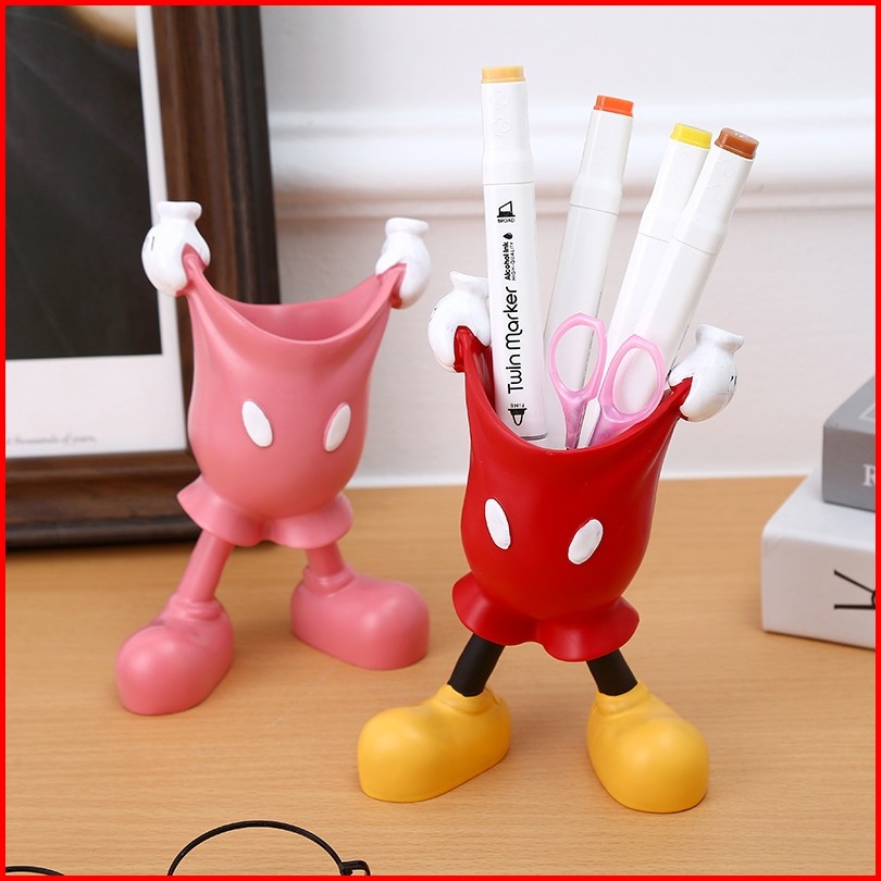 Pensil Meja Pen Holder Mickey Lucu Plastik Serbaguna Tempat Pensil Meja Pulpen Motif Keranjang Desktop Pen Holder