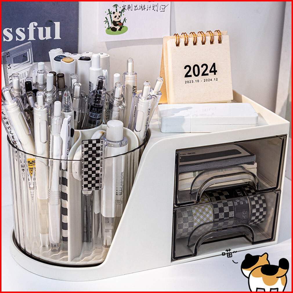 Rak Penyimpanan Alat Tulis Organizer Kotak Penyimpanan Putar Alat Serbaguna Pen Holder - Dd025