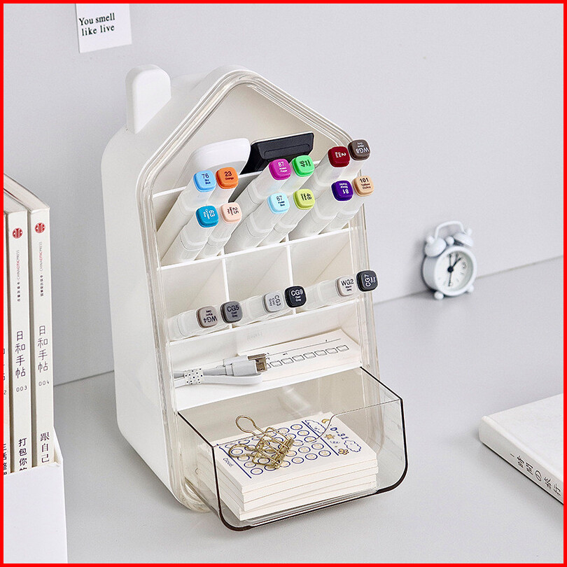 Rak Alat Tulis Mini Bentuk Rumah Organizer Meja Multifungsi - Dd029