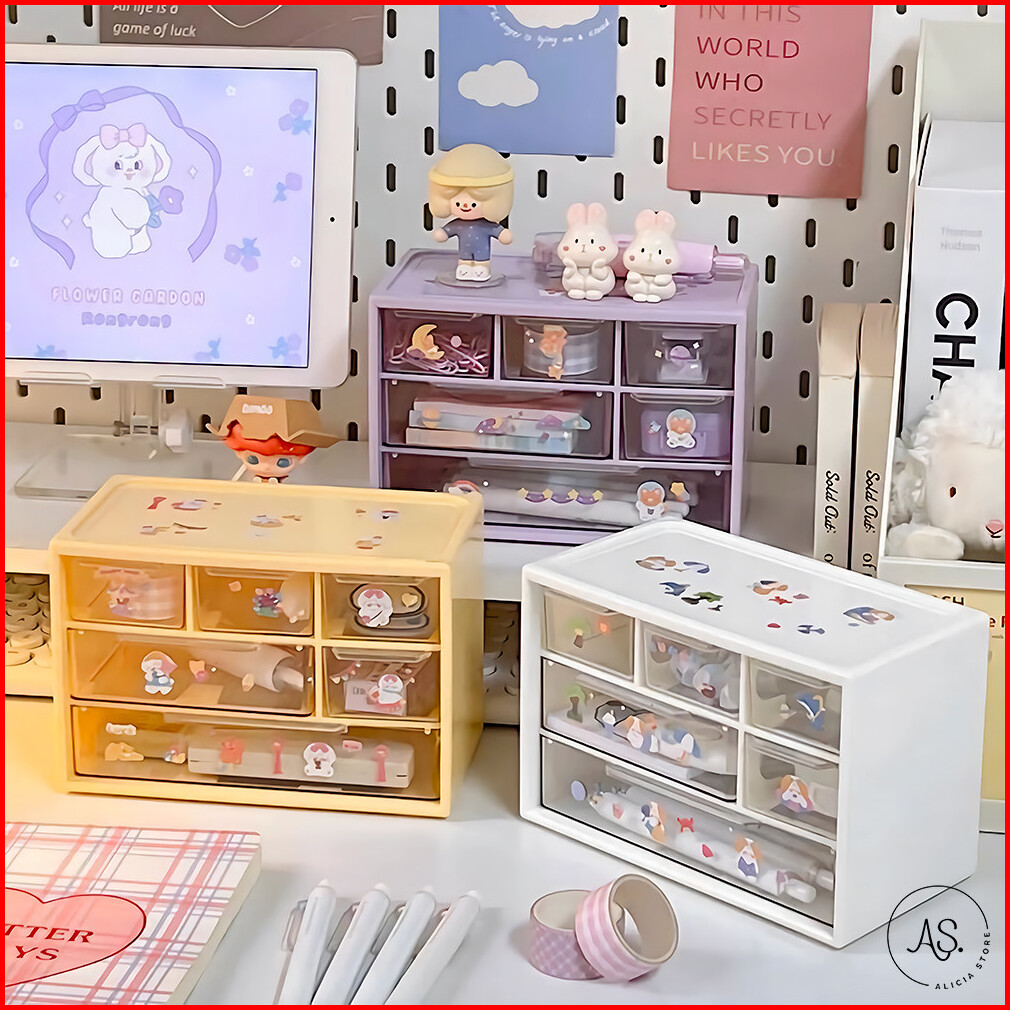 As Kotak Penyimpanan Aksesoris Mini Rak Laci Plastik Serbaguna 6 Sekat