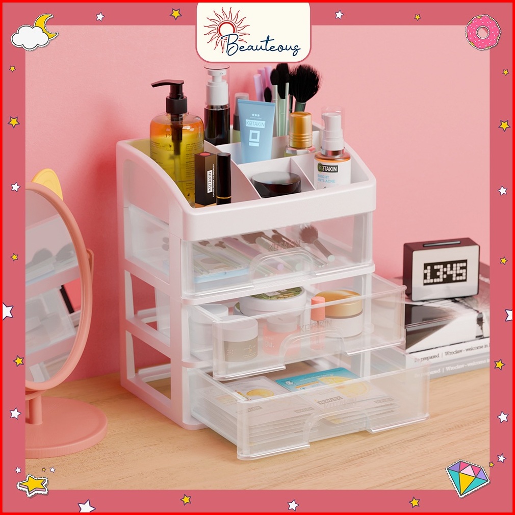 Rak Laci Meja 3 4 Susun Penyimpanan Kosmetik Organizer Stationary Putih Aesthetic Serbaguna