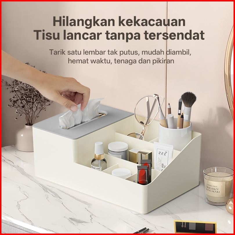 Kotak Tisu Tempat Kosmetik Multifungsi - Penyimpanan Meja Minimalis Modern Organizer Rak Meja Serbaguna