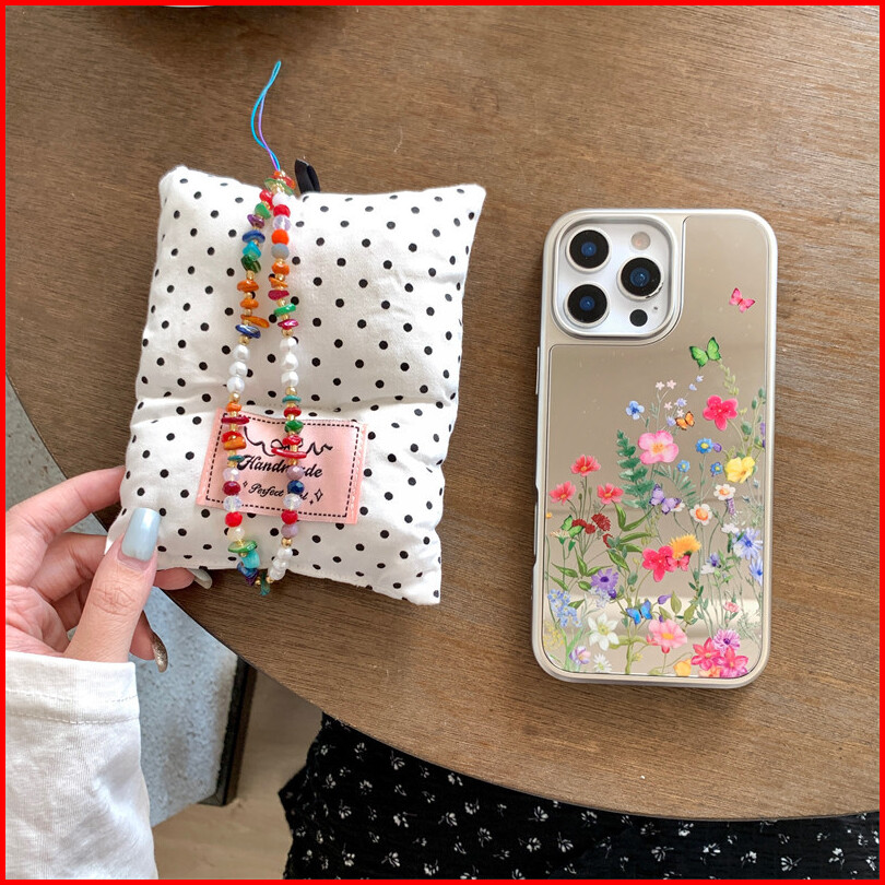 Estetik Flowers Bling Bling Cermin Hologram Case Hp Iphone 16 13 15 11 12 11 14 Pro Max Silver Cewek Coquette Aesthetic