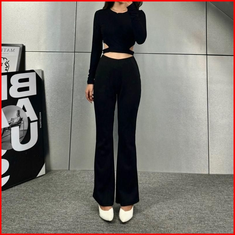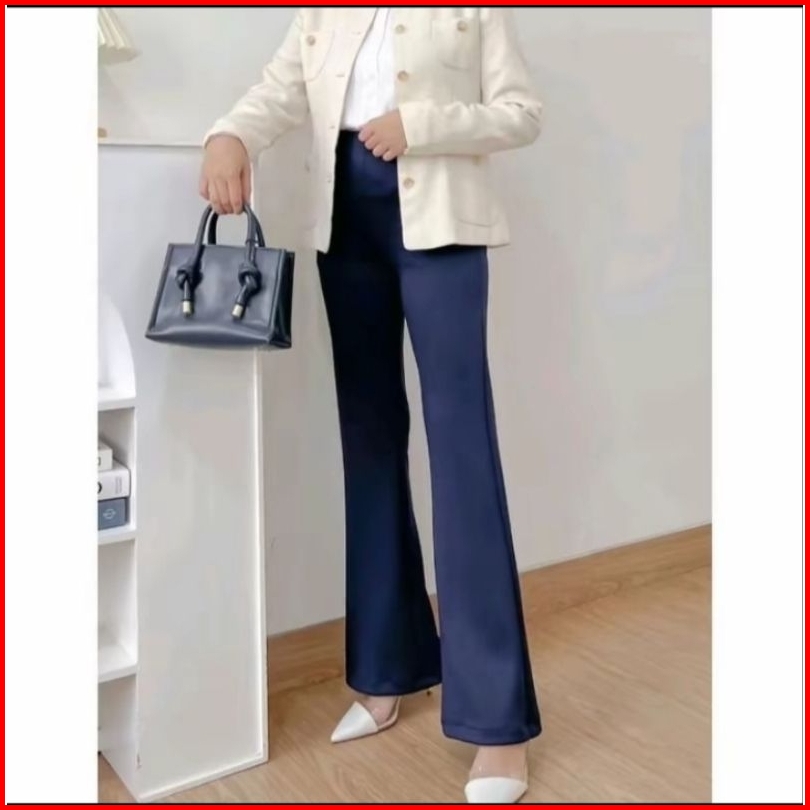 Rb Fashion House - Celana Fit And Flare Pants Cutbray Scuba Pinggang Highwaist Bahan Stretch Melar Elastis Kulot