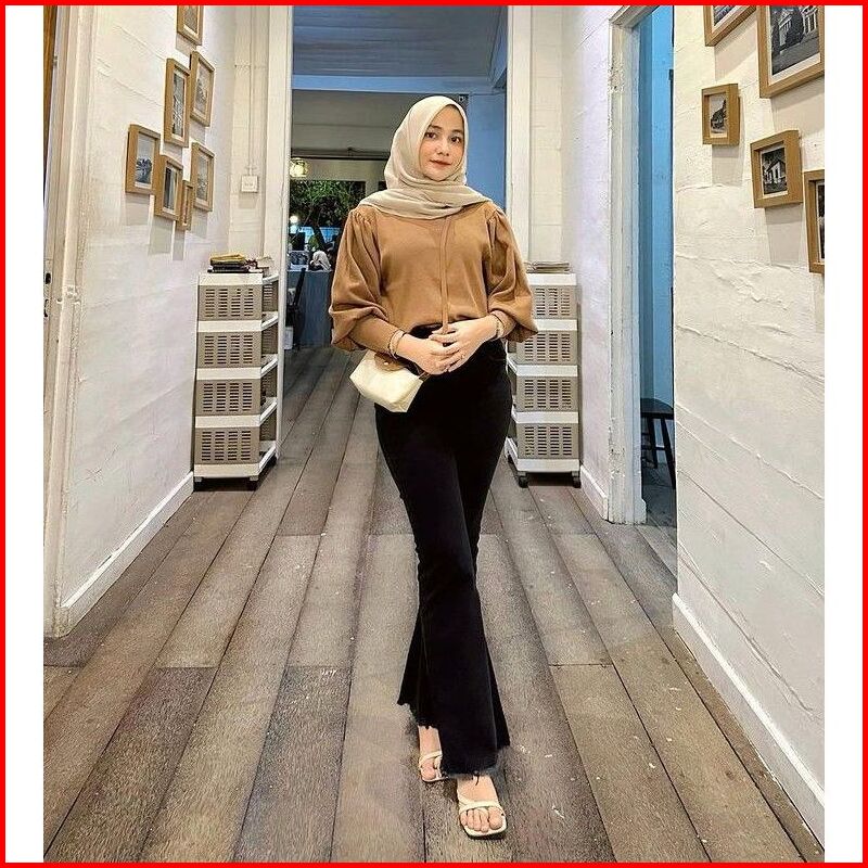 Celana Cutbray Hitam Wanita Slim Look Scuba Highwaist Kekinian Mxxxl Viral