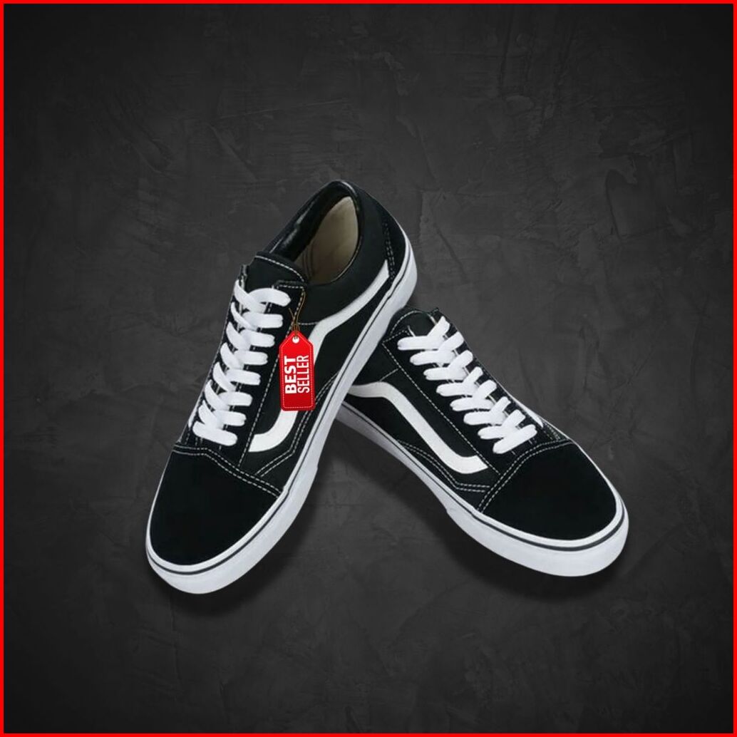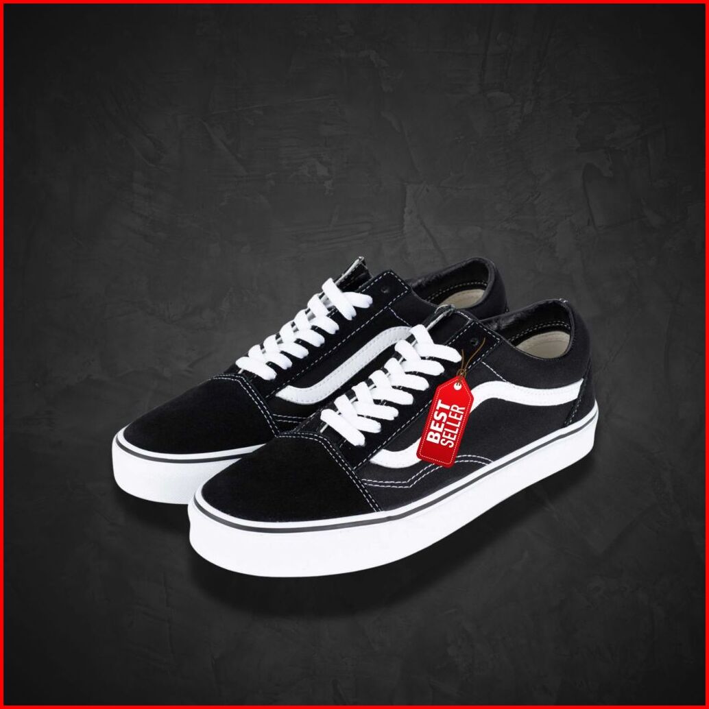Sneakers Old Skool Classic Black White Sepatu Pria Wanita Kualitas Premium