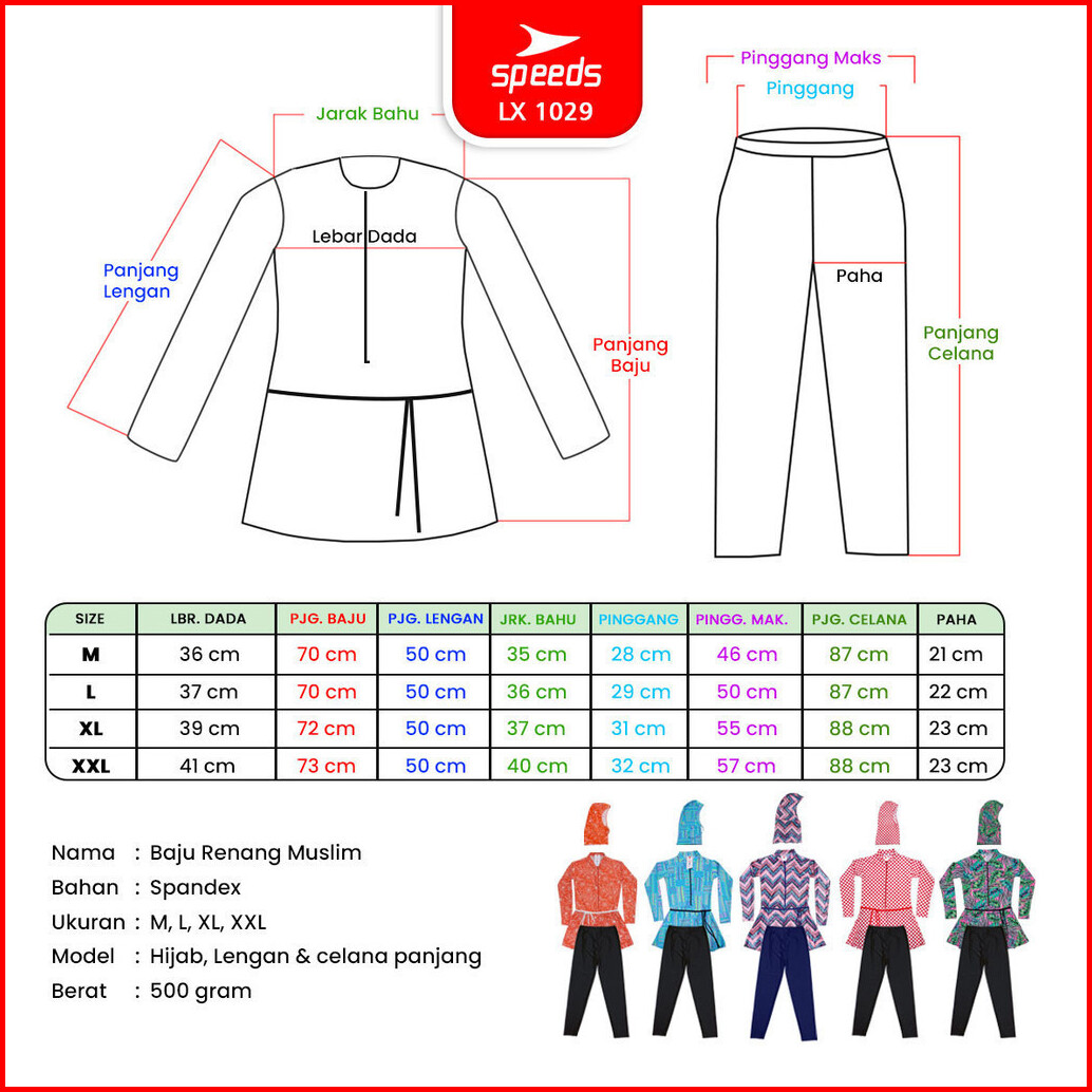 Speeds Baju Renang Hijab Muslim Spandex Asli Swimwear Swim Suit Cewek Wanita Hijab Perempuan Remaja Lx 1029