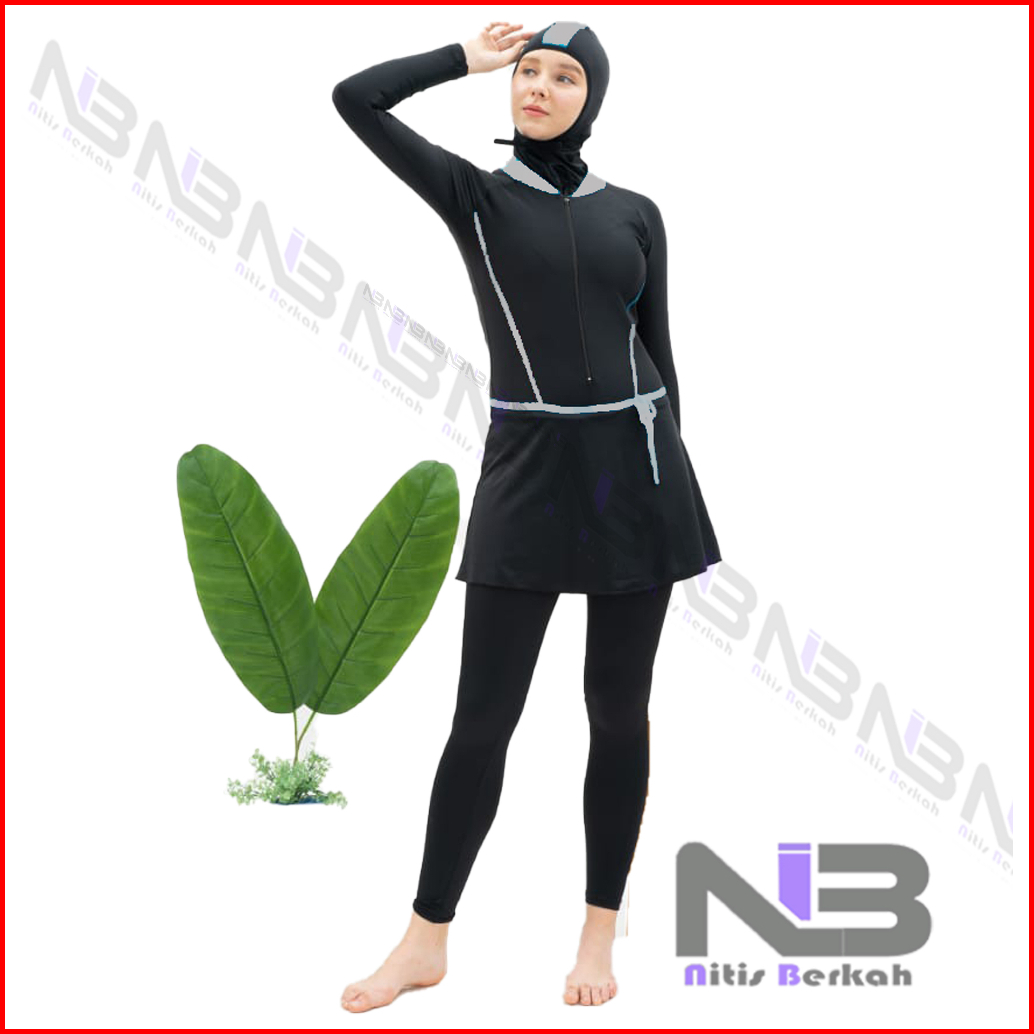 Niber Baju Renang Wanita Muslimah Polos Lis Bahan Premium Baju Renang Hijab Cewek Dewasa