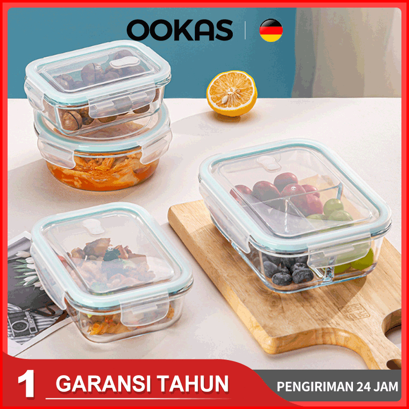 Ookas Tempat Makan Kaca Lunch Box Kotak Penyimpanan Microwave Bekal