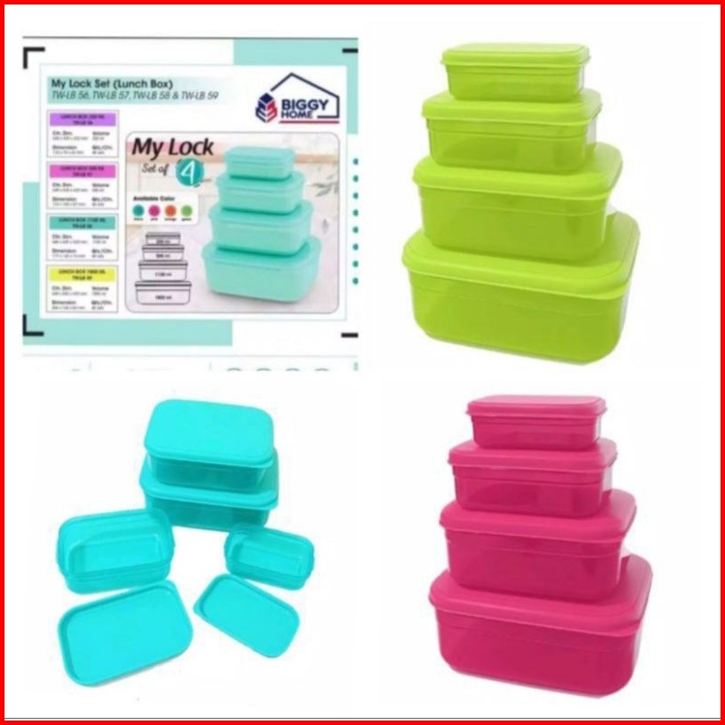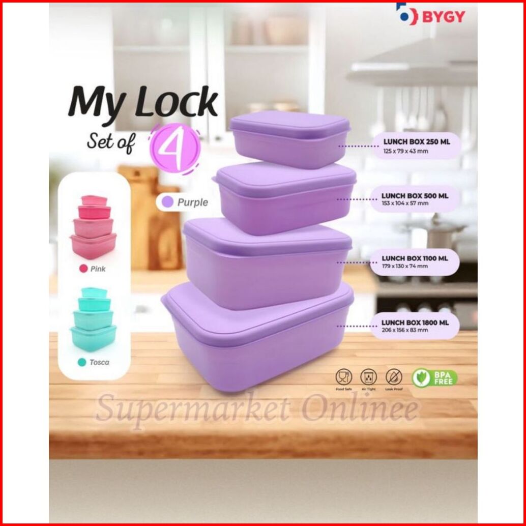 Toples Kotak Serbaguna Mylock Set 4pcs Lunch Box Set Isi 4 Tempat Makanan Bekal Rantang Piknik Tebal
