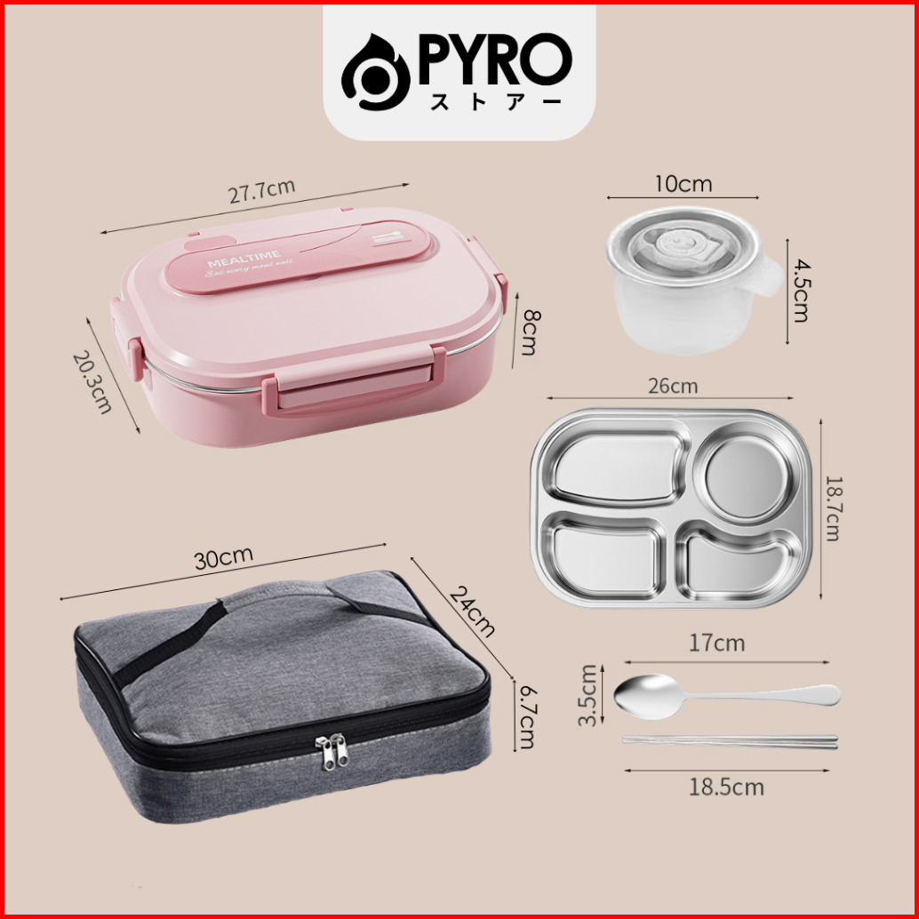 Pyro Lunch Box 1500ml Stainless 316 Kotak Makan Sekat 4 Anti Tumpah Free Sendok Sumpit Tempat Sup