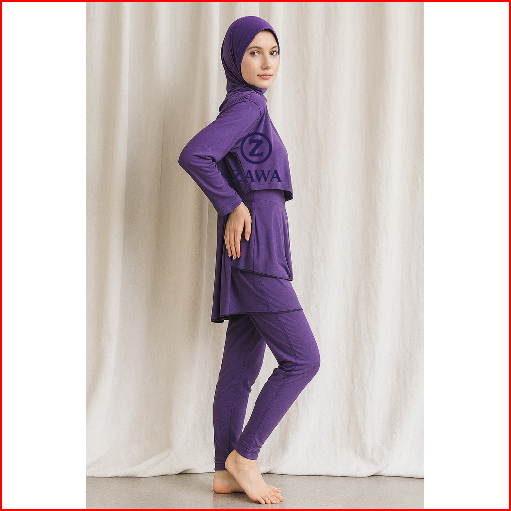 Zawa Stella Muslimah Swimwear Purple - Baju Renang Muslimah Hijab Syari Sporty Remaja Perempuan