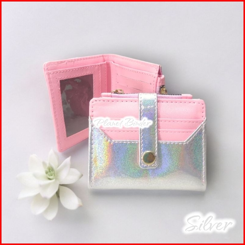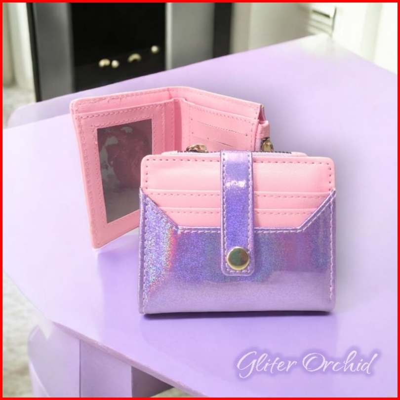 Dompet Lipat Wanita Cantik Hologram Aesthetic Gratis Stiker
