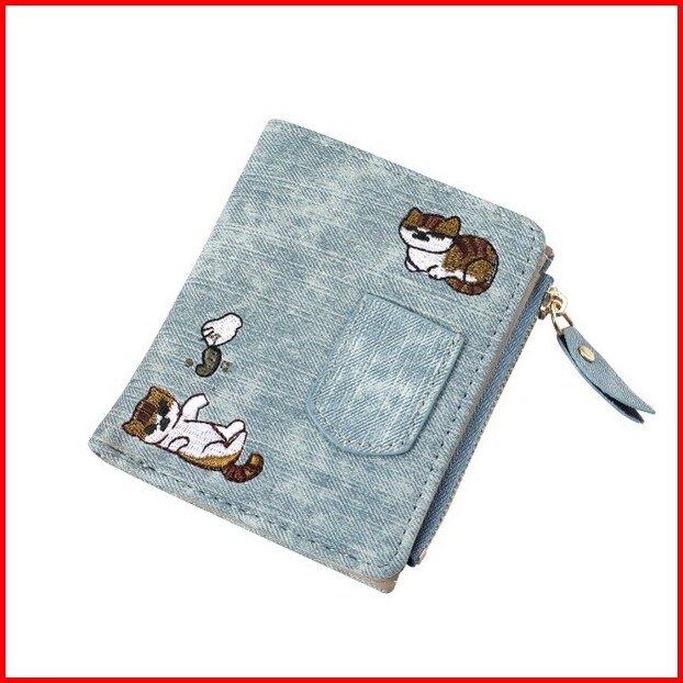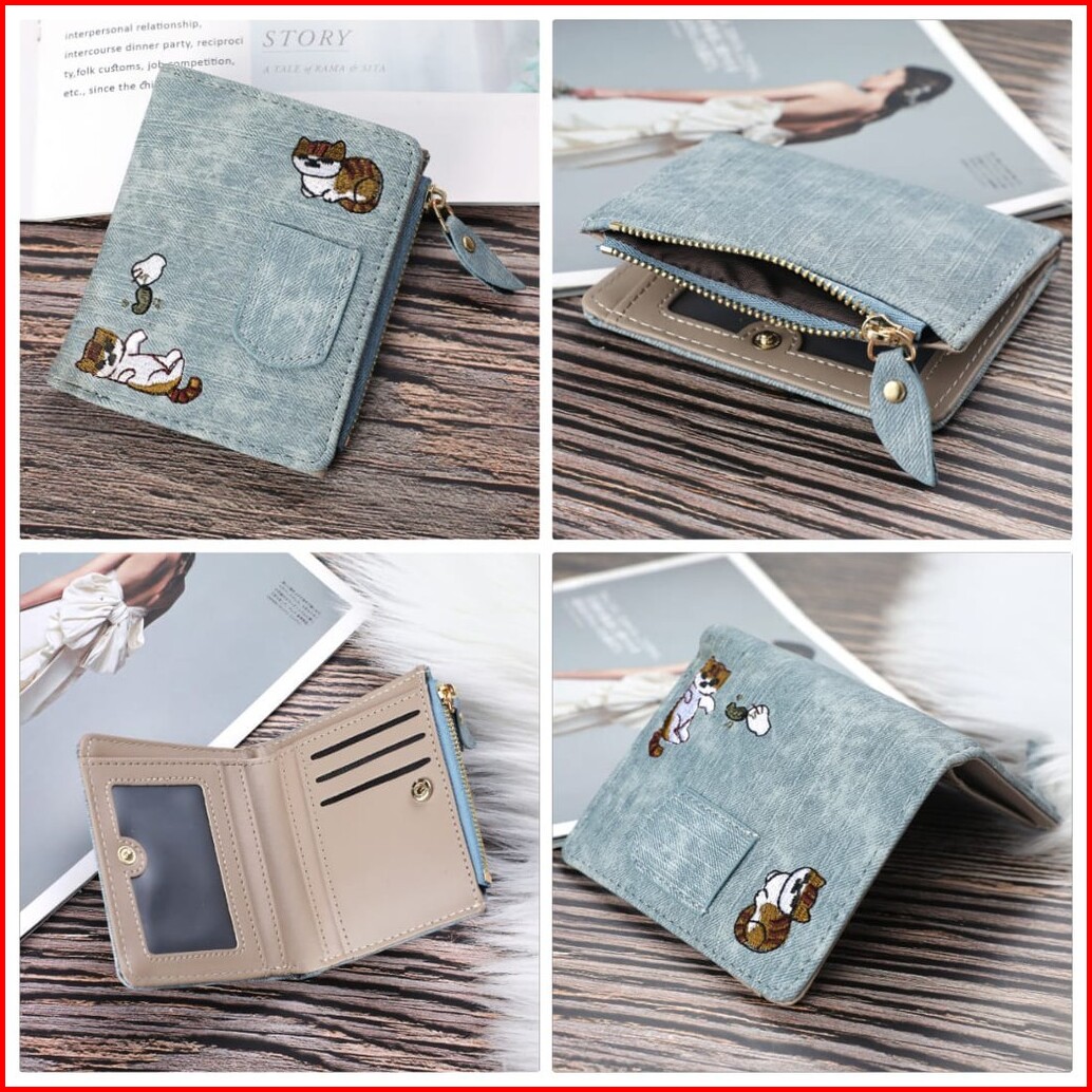 Dompet Wanita Kecil Fashion Murah Abg Batam Motif Denim Ori Felicia Wa033b2 Kulit Kucing Biru