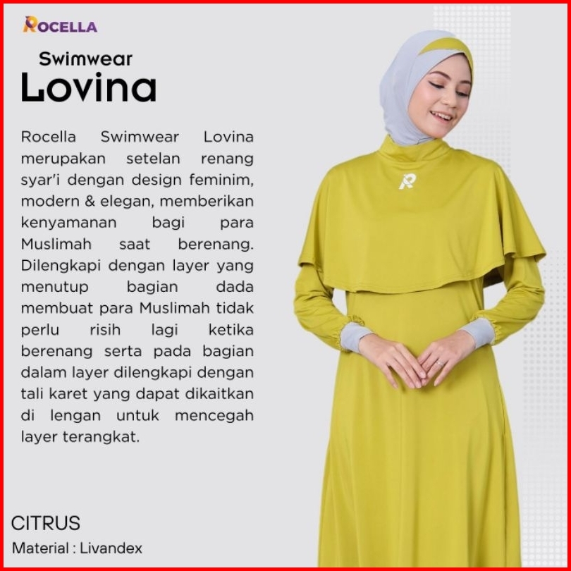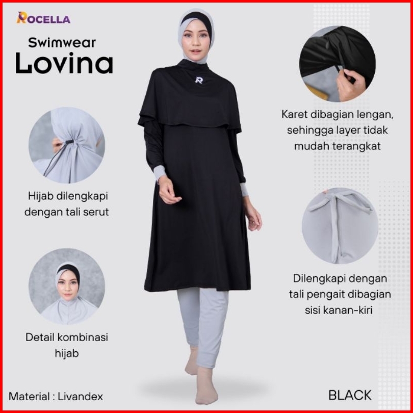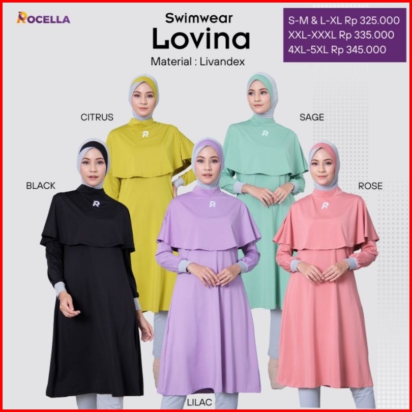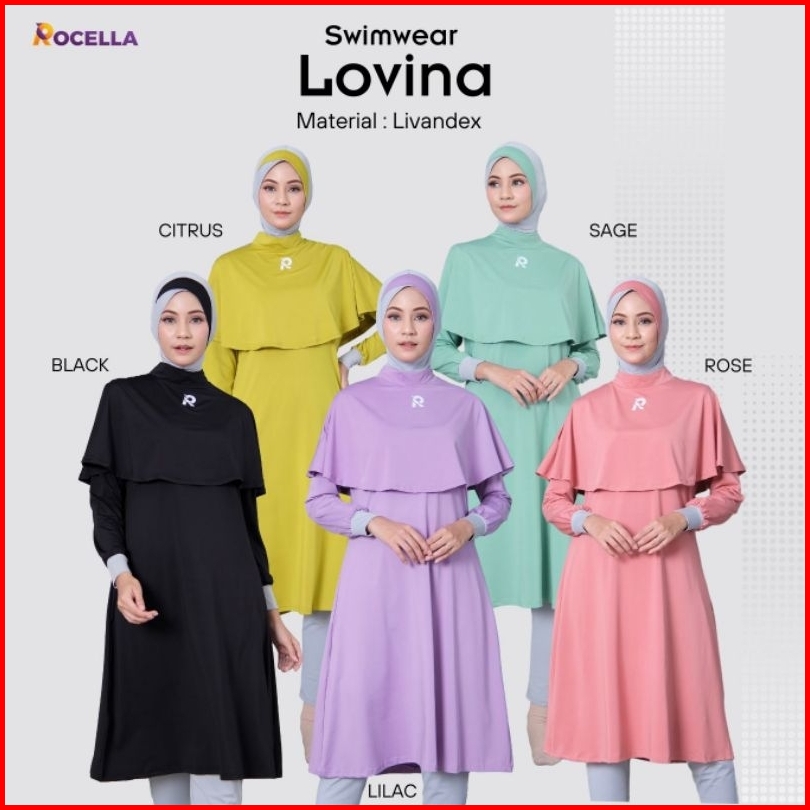 Baju Renang Muslimah Rocella Lovina Swimwear Wanita Dewasa Syari Material Livandex