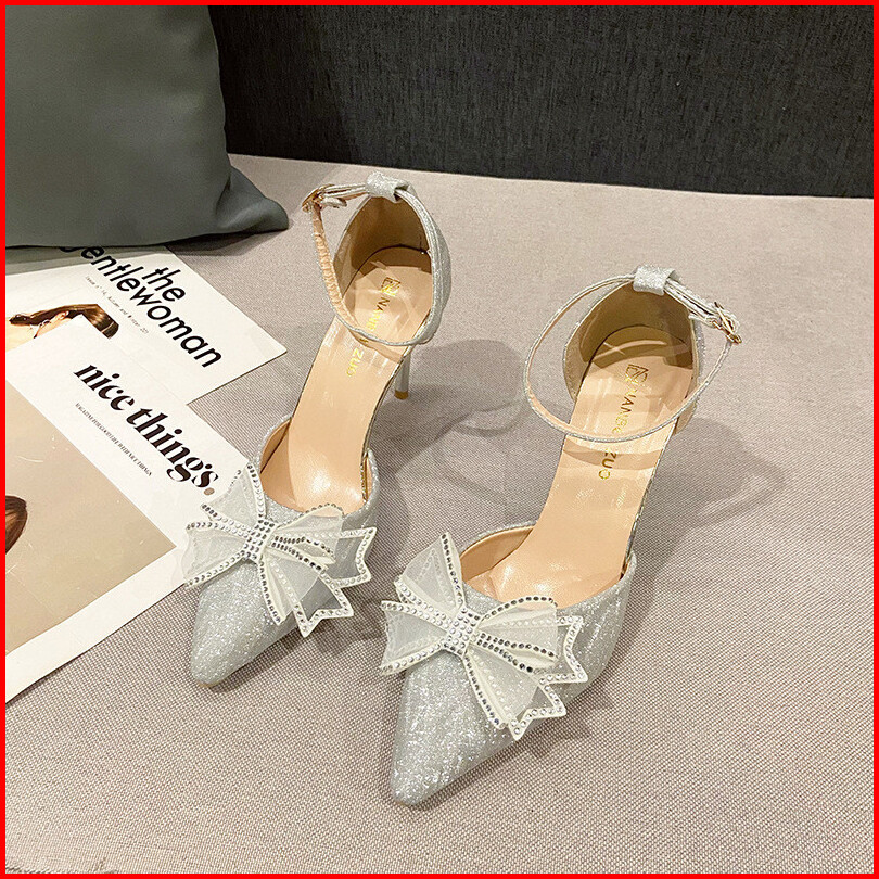 Sepatu Koleksi Hak Tinggi High Heels Wanita Elegan Tipe Pengikat Gesper Ujung Runcing 8cm S-24
